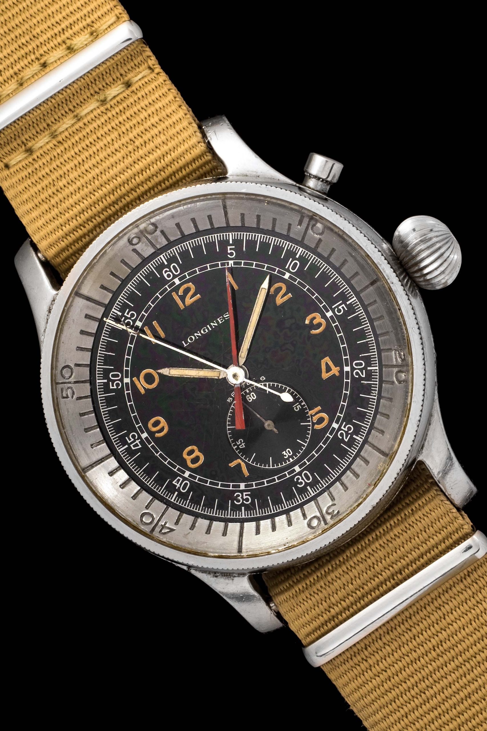 a mint and rare Longines Big Pilot watch made for the Israeli Defence Force, watch is in very good conditions with a superb gilt black dial, all original and untouched