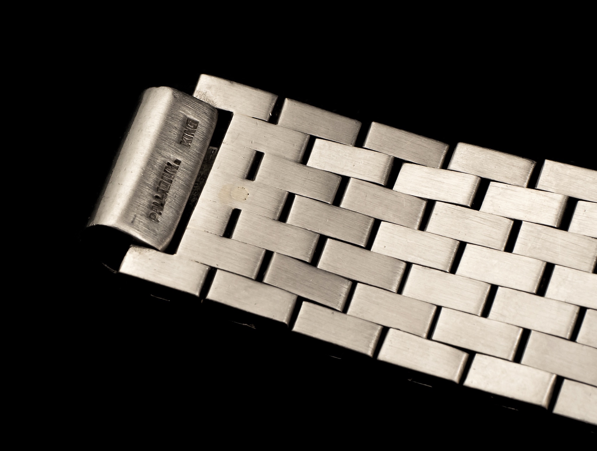 The Patek Philippe 1593 is a watch that is seldom seen as it’s estimated that fewer than 1000 were made in its production from 1944 to 1967. Most of these watches were manufactured in yellow gold but very few were cased in platinum. Ours here is platinum, accompanied by a diamond encrusted dial, and put together by a platinum bracelet. The watch was manufactured in 1953 and its condition is stellar.