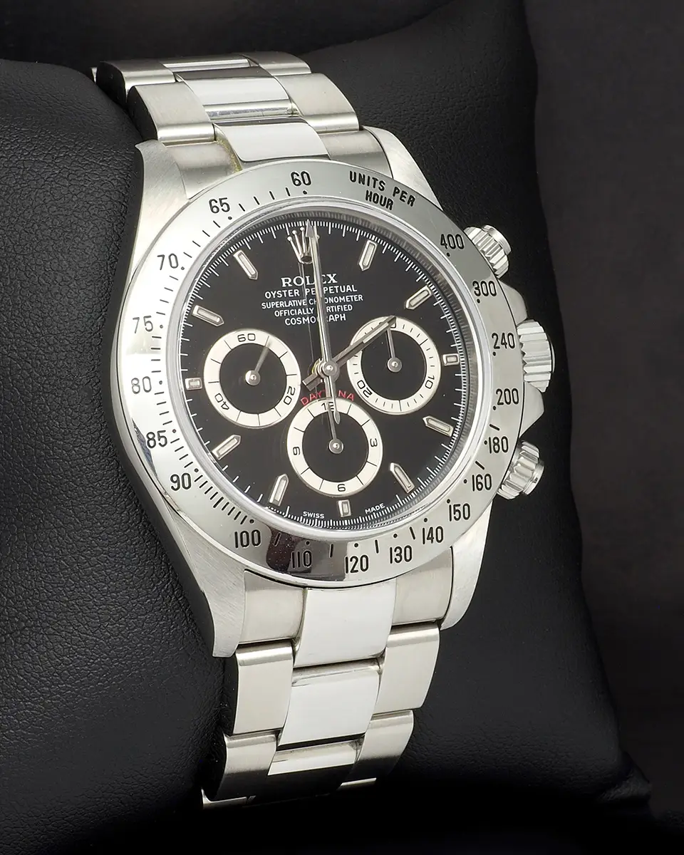 The importance of the Rolex Daytona Zenith is just staring to be felt within the collector community. Unbeknownst to most the Zenith era was one of the most important times for the famed chronograph, due to the fact that it inspired Rolex to create fully in-house chronograph movement. The Daytona offered here belongs to the A-series representing a 1999 production. Accompanied by a full set of box and papers, a detail incredibly sought after by die hard Daytona fans.