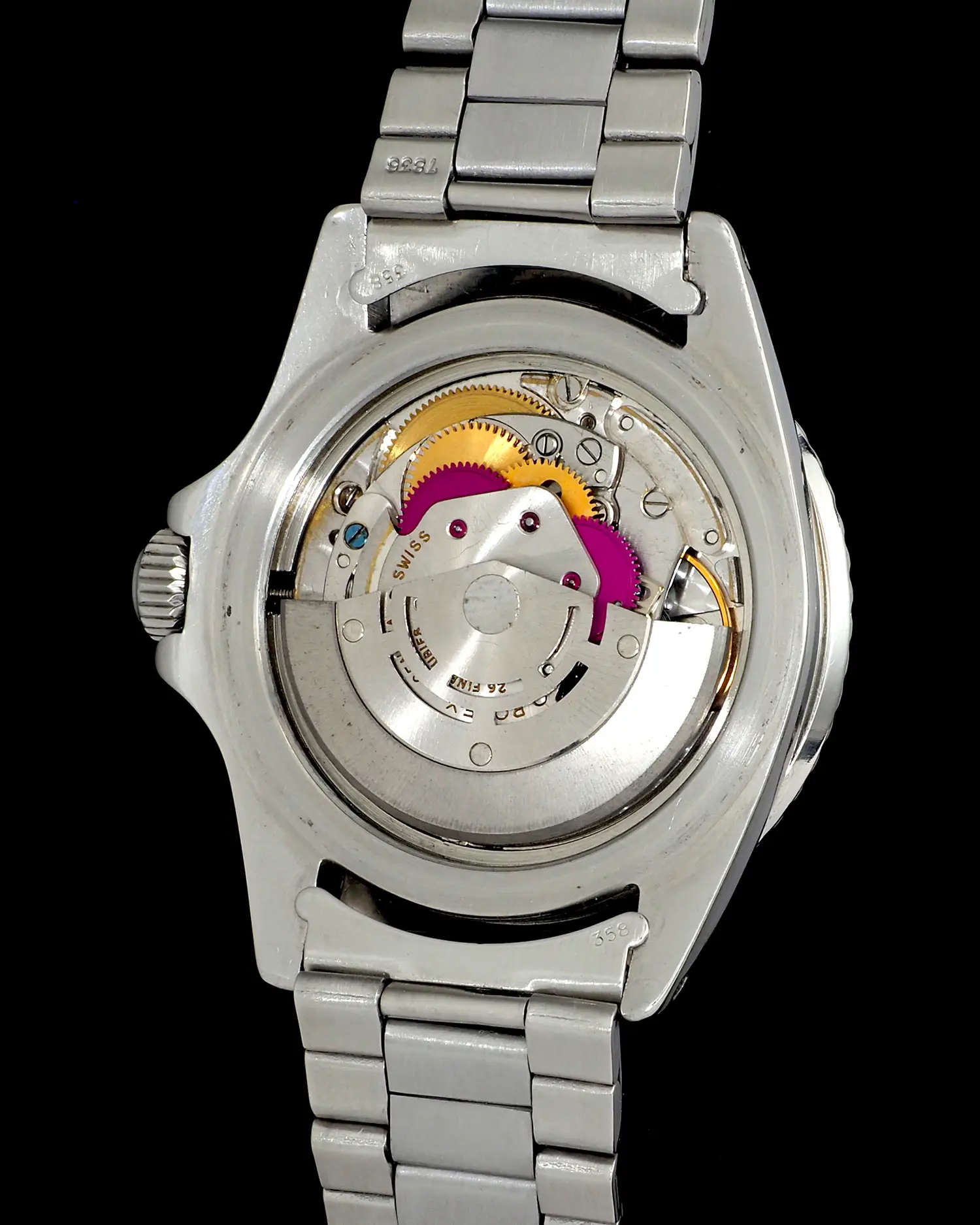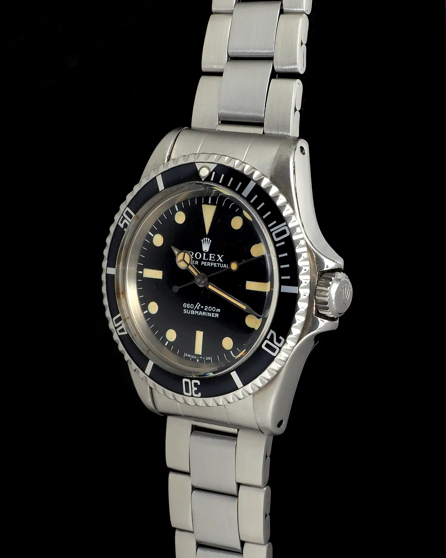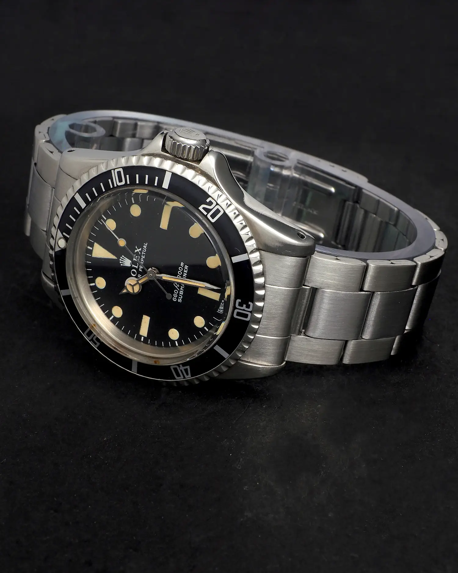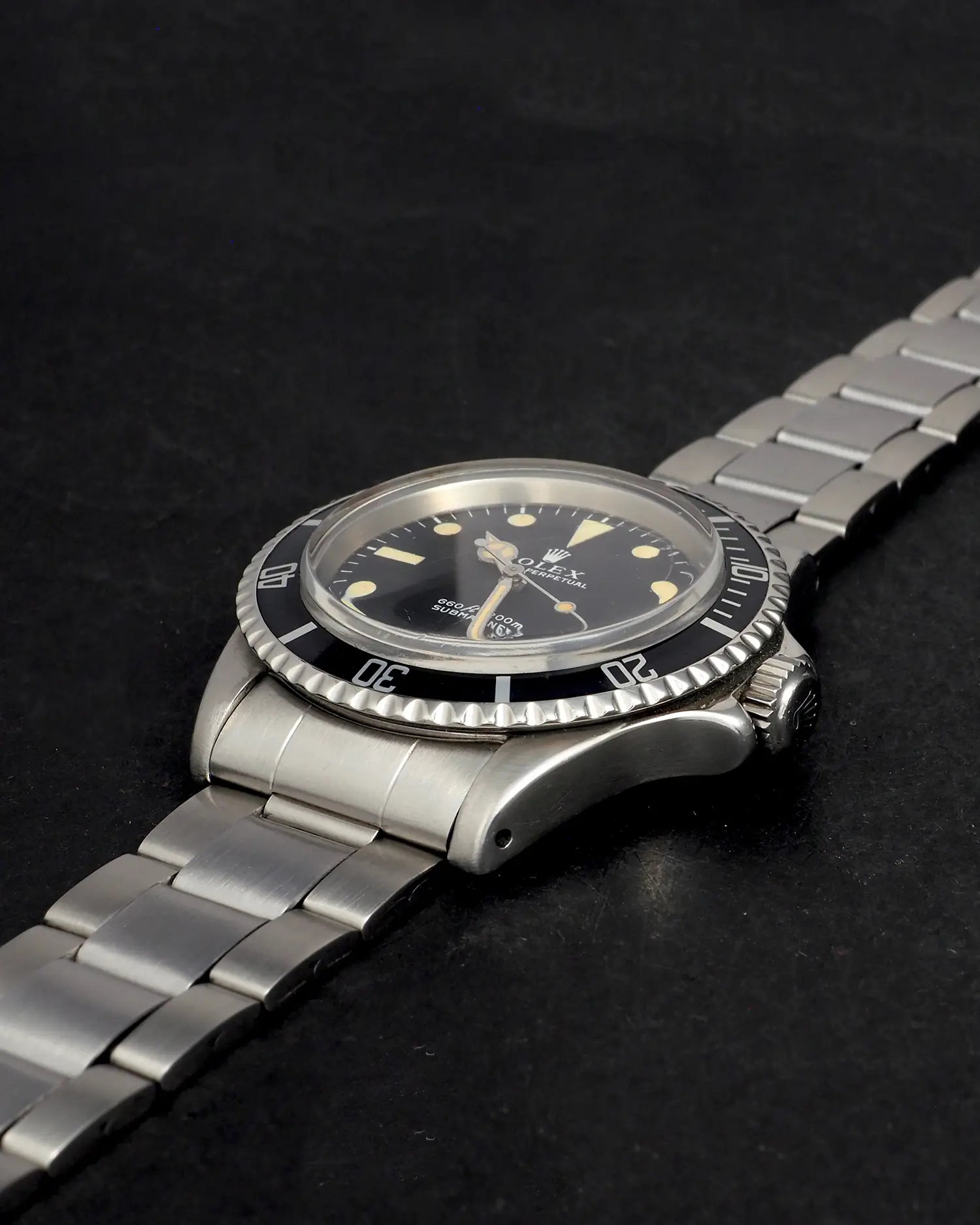The Rolex Submariner is an iconic diver watch with an iconic design. The look and feel of this watch is so well balanced and proportionate that Rolex has virtually unchanged the model since it was first introduced. Our Submariner 5513 comes with a beautiful feet first matte dial and put together by an oyster bracelet. The watch has a manufacture date of 1965.